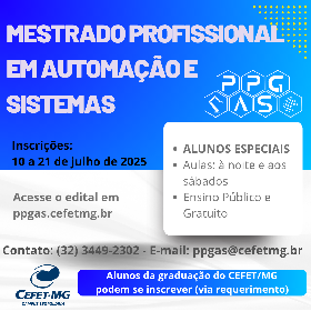 Publicado o Edital DPPG 51/2025 para a seleção pública simplificada de ALUNOS ESPECIAIS para o semestre 2025/2 do Mestrado Profissional em Automação e Sistemas.